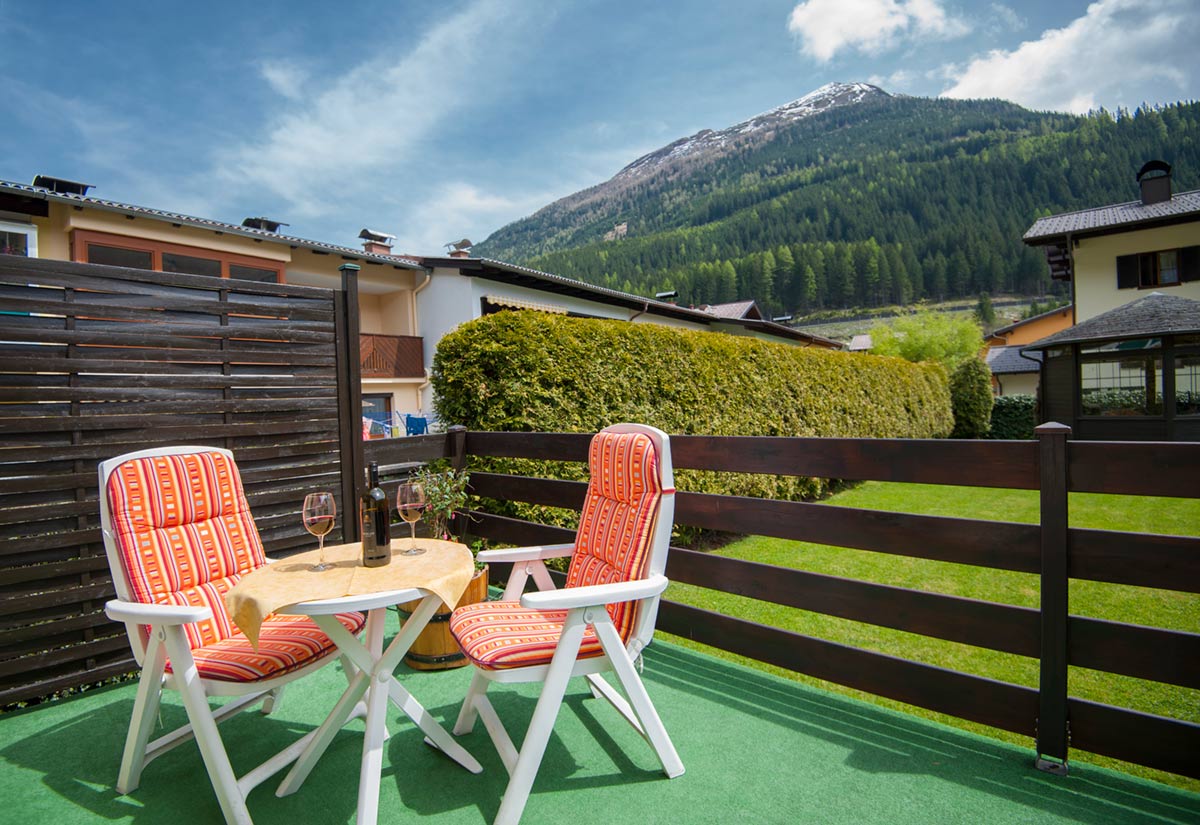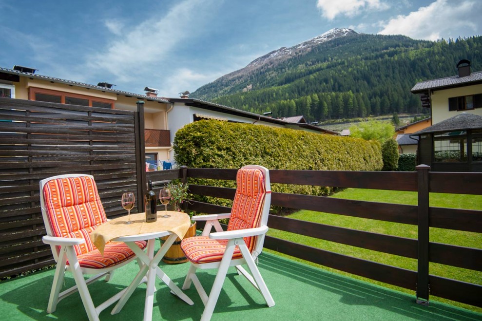 Highlight für Mußestunden: sonnige Terrasse mit Tisch und (Liege-)Stühlen, Richtung Osten