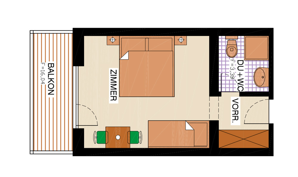 Klicken Sie hier, um den Grundriss vom Doppelzimmer anzusehen.