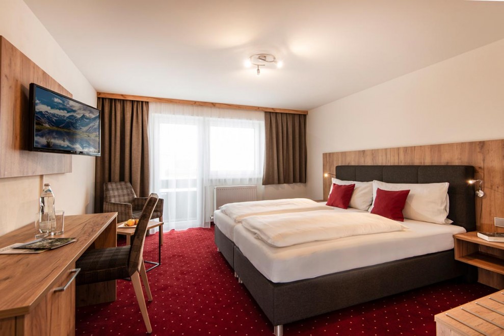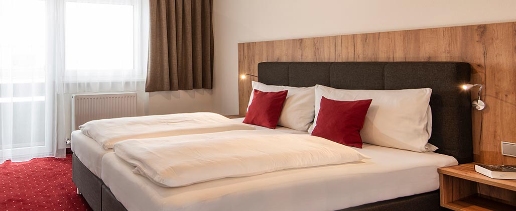Neu renovierte Doppelzimmer, Wohnfläche ca. 22 m², im 1. Stock mit Balkon.